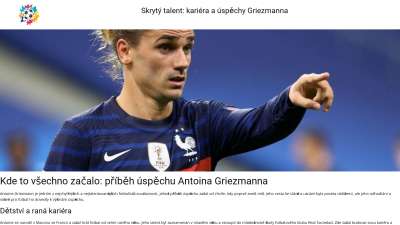 | h2 содержит | Kde to všechno začalo: příběh úspěchu Antoina Griezmanna;Cesta ke slávě: příběh fotbalové kariéry Antoina Griezmanna;The Ultimate Master: Recenze Griezmannovy hráčské kariéry; | 1 из 5 слов | Супер | Рекомендуем добавить слова: a, talent, kariéra, úspěchy |