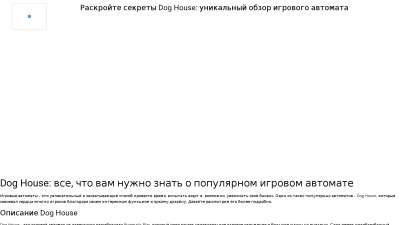 | h1 содержит | Раскройте секреты Dog House: уникальный обзор игрового автомата; | 5 из 5 слов | Супер | Подзаголовок H1 имеет оптимальное вхождение слов |