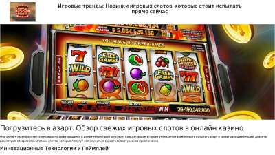 | h2 содержит | Погрузитесь в азарт: Обзор свежих игровых слотов в онлайн казино;Играй и выигрывай крупно: Ознакомление с самыми перспективными новинками игровых слотов;Уникальное разнообразие: Обзор новейших игровых слотов для всех любителей азарта; | 2 из 5 слов | Супер | Рекомендуем добавить слова: который, испытать, сейчас |
