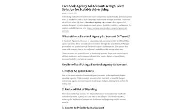 | h1 содержит | Facebook Agency Ad Account: A High-Level Solution for Scalable Advertising;Facebook Agency Ad Account: A High-Level Solution for Scalable Advertising; | 5 из 5 слов | Супер | Подзаголовок H1 имеет оптимальное вхождение слов |